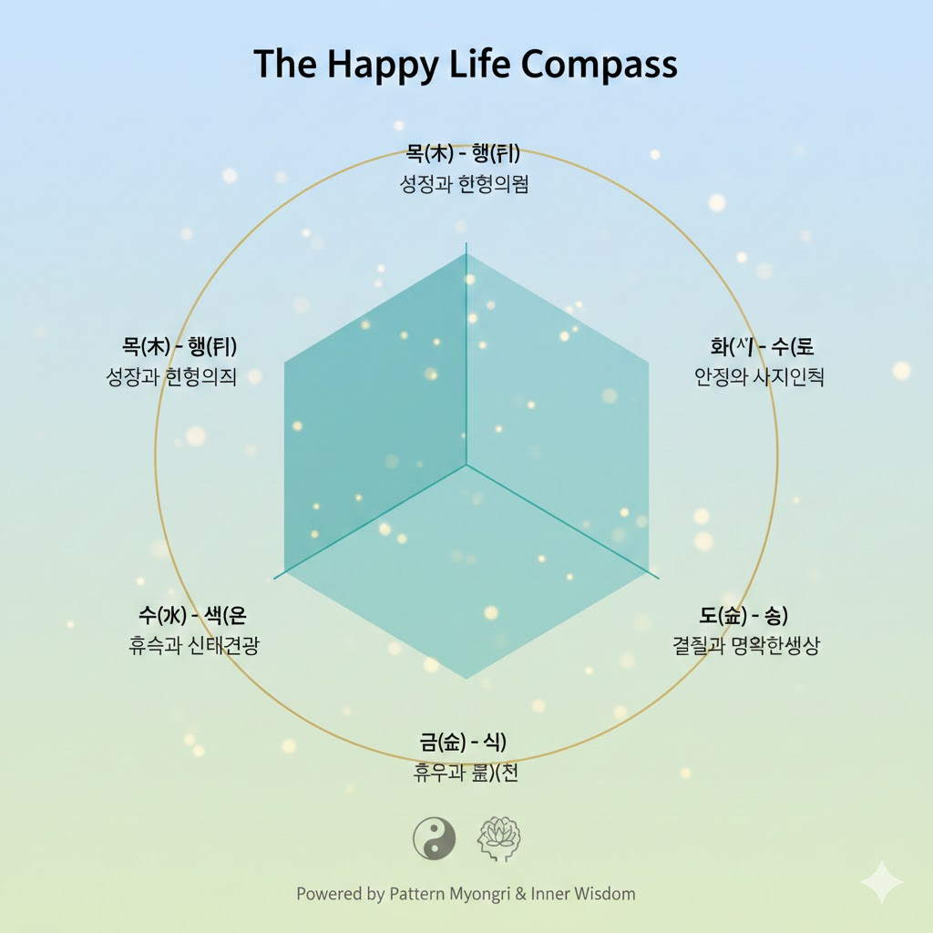 → 행복은 **방향(목) + 감정(화) + 안정(토) + 실행(금) + 내면(수)**의 균형이다.