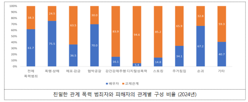 여성 5명 중 1명은 평생 친밀한 관계에 의한 폭력 피해를 경험한 것으로 집계. 특히 스토킹 범죄의 절반 이상은 친밀한 관계에서 발생한 것(오행과 오온으로 분석)