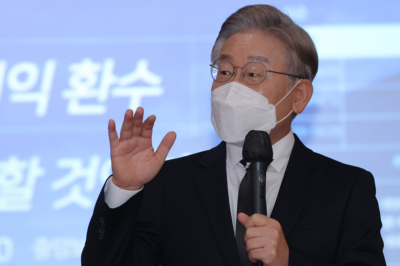 “우리 국민의 짐. 아이쿠, 죄송합니다. 도둑의 힘. 아 이것도 아닙니다. 국민의힘.”9월28일 중앙보훈회관에서 열린 ‘개발이익 환수 어떻게 할 것인가’를 주제로 한 토론회에서 이재명 경기도