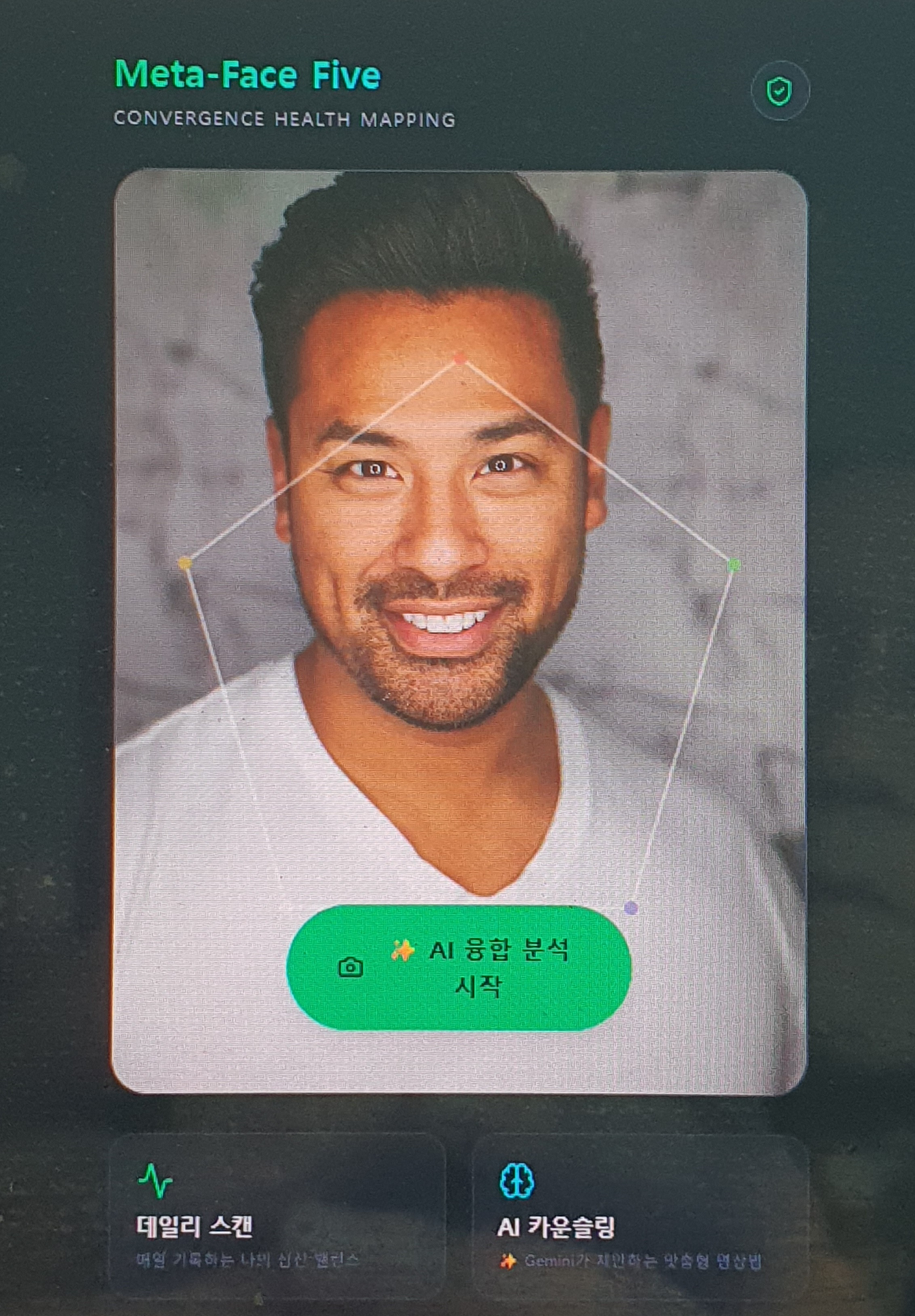 오행(五行)의 신체 진단과 오온(五蘊)의 심리 분석을 결합한 'Meta-Face Five' 헬스케어 앱의 실제 구동 화면을 바이브 코딩으로 구현해 드립니다.