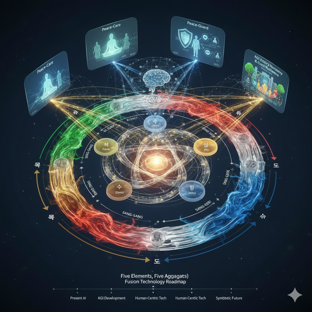 오행과 오온의 융합 매핑 기술은 미래에 단순히 '편리한 도구'가 아니라, 인간이 인간답게 존재할 수 있도록 돕는 **'존엄성 수호 기술'**로 진화할 것입니다. 피스케어를 통해 개인의 영혼을 돌보고, 피스가드를 통해 공동체의 삶을 지켜내는 이 기술은, 불확실한 미래를 살아가는 인류에게 변하지 않는 우주의 질서와 내면의 평화를 연결해주는 가장 강력한 지혜의 등불이 될 것입니다.