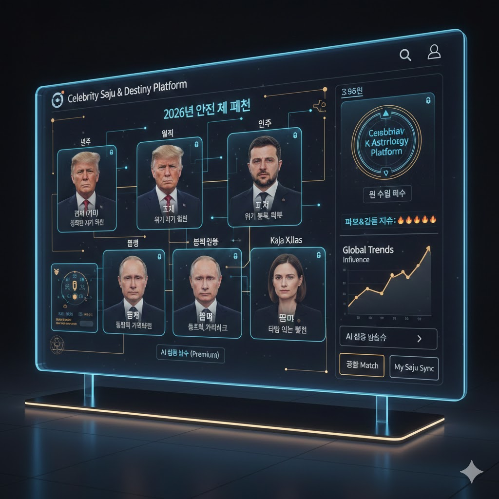 - 글로벌 확장성: 사주(Saju)는 최근 'K-Culture'의 영향으로 해외에서 'Korean Astrology'로 주목받고 있습니다. 트럼프, 푸틴 등 글로벌 인물을 다룬다면 영어권 사용자를 대상으로 한 글로벌 플랫폼으로 성장이 가능합니다.
