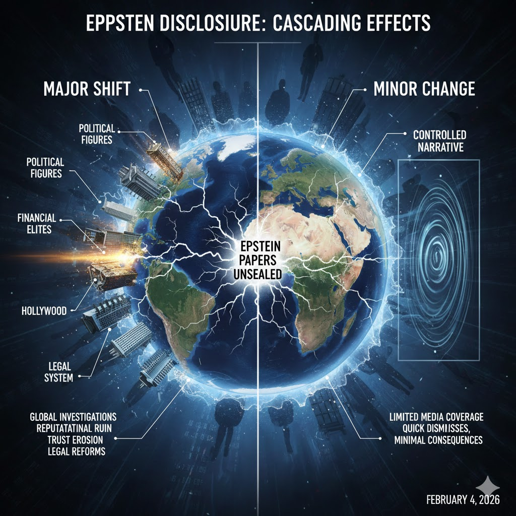 현재 엡스타인 문서(파일·자료) 공개가 확대될 경우 파급효과는 “큰 변화” 쪽에 더 가깝다는 평가가 일반적인 관측이다. 공개 확대가 실질적인 영향력을 갖기 위해서는 단순 공개를 넘어서 정치·법적 책임, 사회적 신뢰, 피해자 보호, 제도적 반응 등 복합적 변수가 작동하기 때문이다. 주요 논점을 구조적으로 정리하면 다음과 같다: