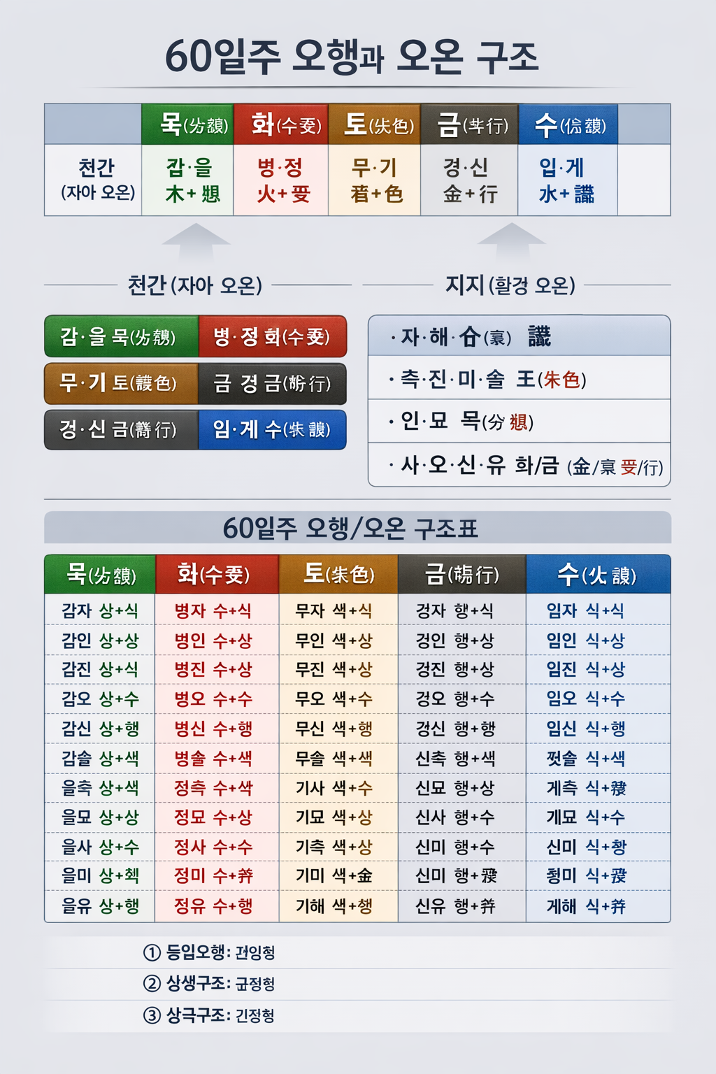 4️⃣ 60일주 전수 배열 (오행·오온 구조 포함)