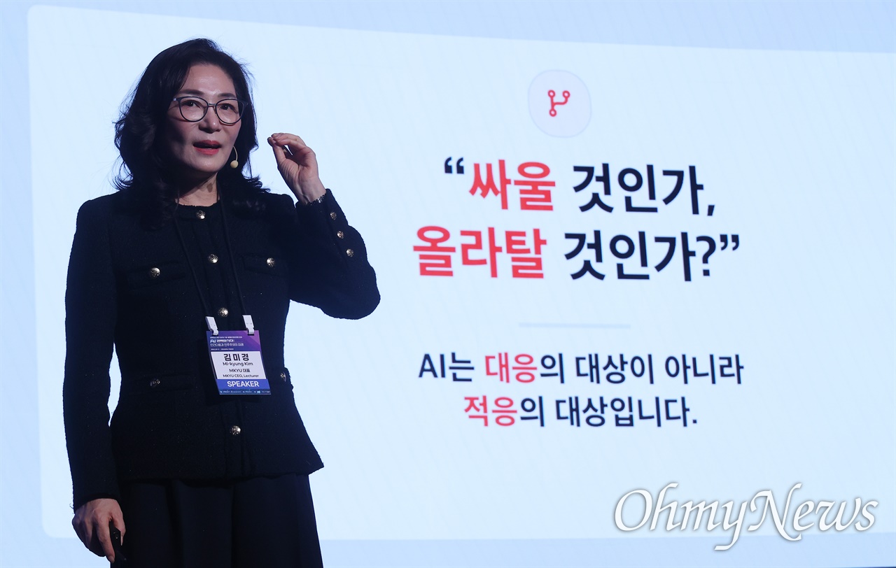 김미경 MK유니버스 대표는 AI를 기술이 아닌 '문명'으로 정의하며, 전기처럼 인간의 삶을 근본적으로 바꿀 인프라라고 강조했다. 3일 만에 앱을 개발하고 2일 만에 보고서를 작성한 경험을 공유하