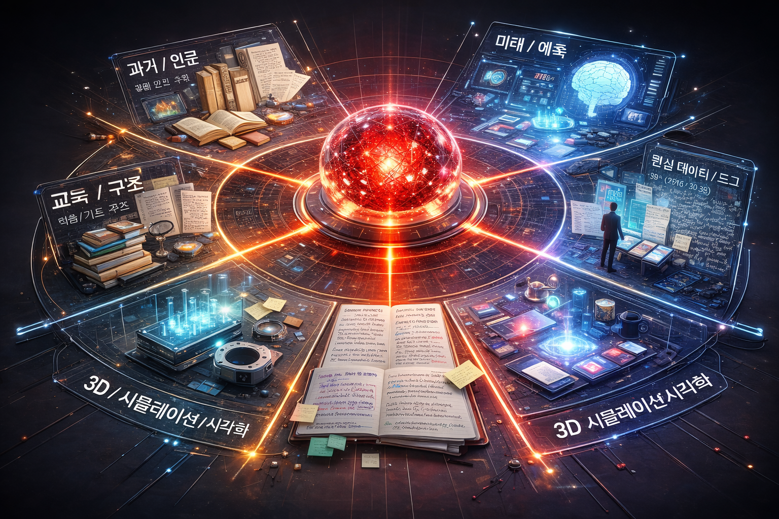 - 모서리 영역: '1인 연구소'와 '교육'을 배치하여, 이 모든 지식이 개인의 연구와 학습을 통해 전파됨을 시사합니다.