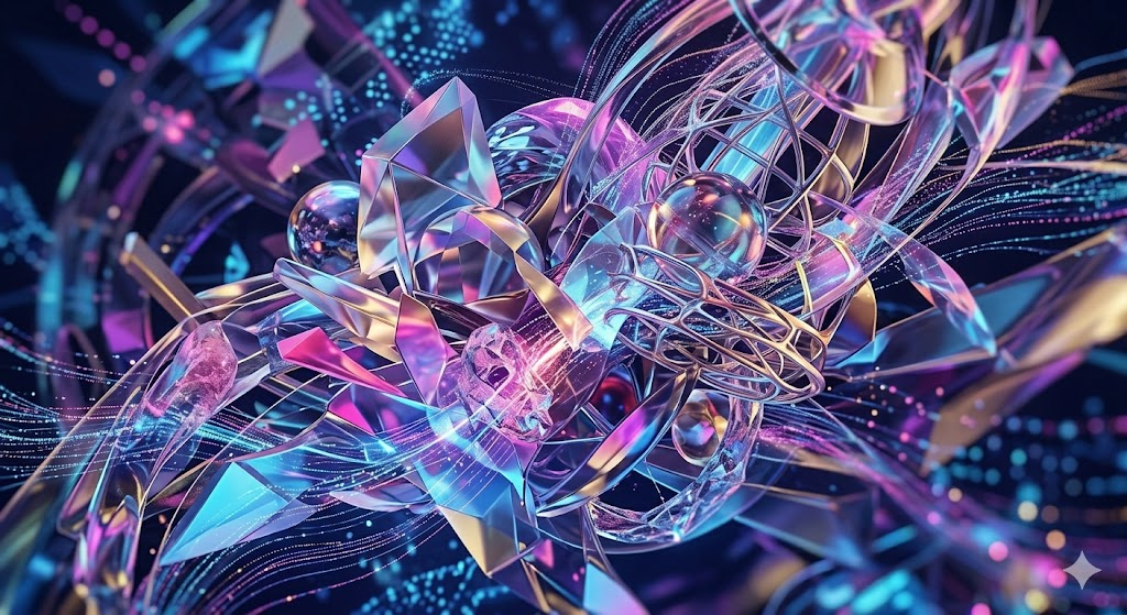 이 이미지는 단순한 렌더링이 아니라, 원본의 각 요소가 가진 의미와 관계를 기하학적 형태와 정보 흐름으로 재해석한 작품입니다.