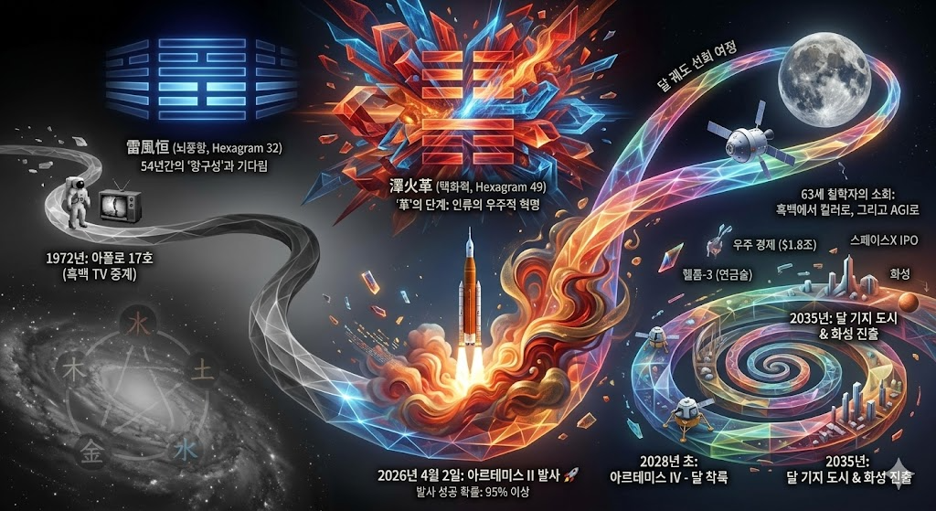 - 천기 상황: **아르테미스 II(2026년 4월)**를 통해 4명의 우주인이 달 궤도에 진입하며, 끊겼던 인류와 달의 기운이 다시 연결됩니다.